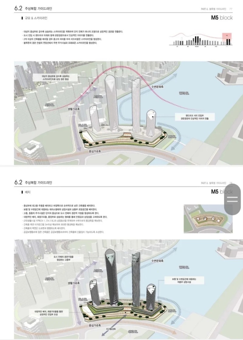M5블록에 61층, 58층, 45층 규모의 주상복합건물 3개 동