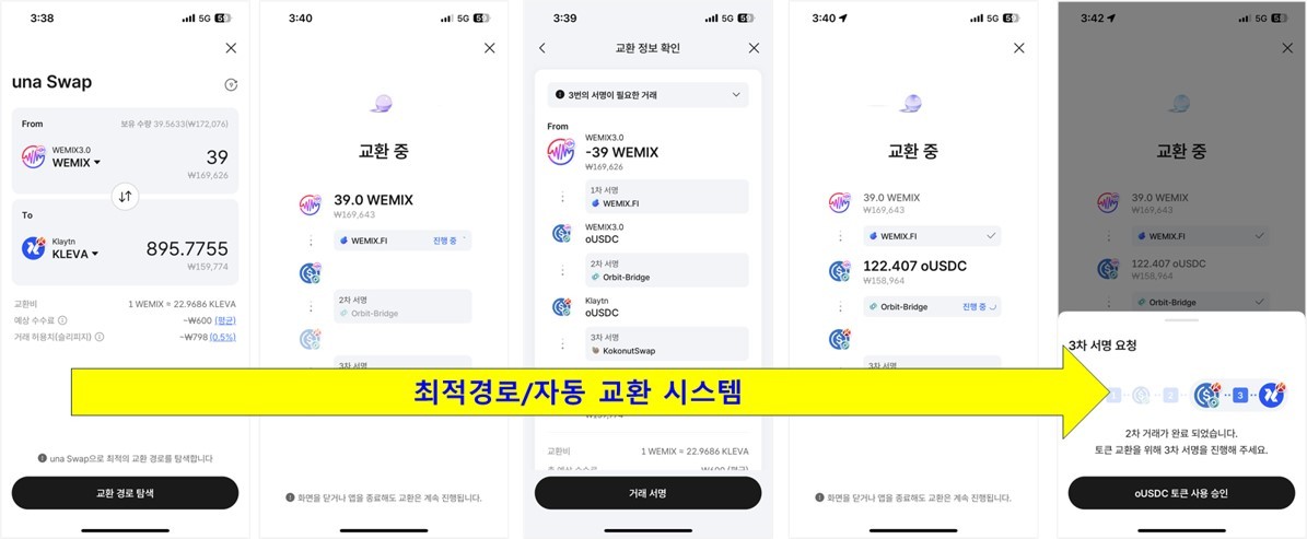 이전처럼 한 단계마다 사용자가 직접 토큰을 교환하는 방식이 아닌, 자동으로 교환하는 방식으로 아주 편리해 지는 것이죠. 최근에 개편된 WemixPlay 월렛에도 우선 적용되어 있으니 한번 변환해 보면 쉽게 이해할 수 있습니다. (물론 게임유저는 인식하지 못하지만 뒷단 시스템에서는 연결체인 - Unagi - Unagi swap- wemix.Fi- Wemix Paly의 복잡한 절차를 거치게 됩니다.)