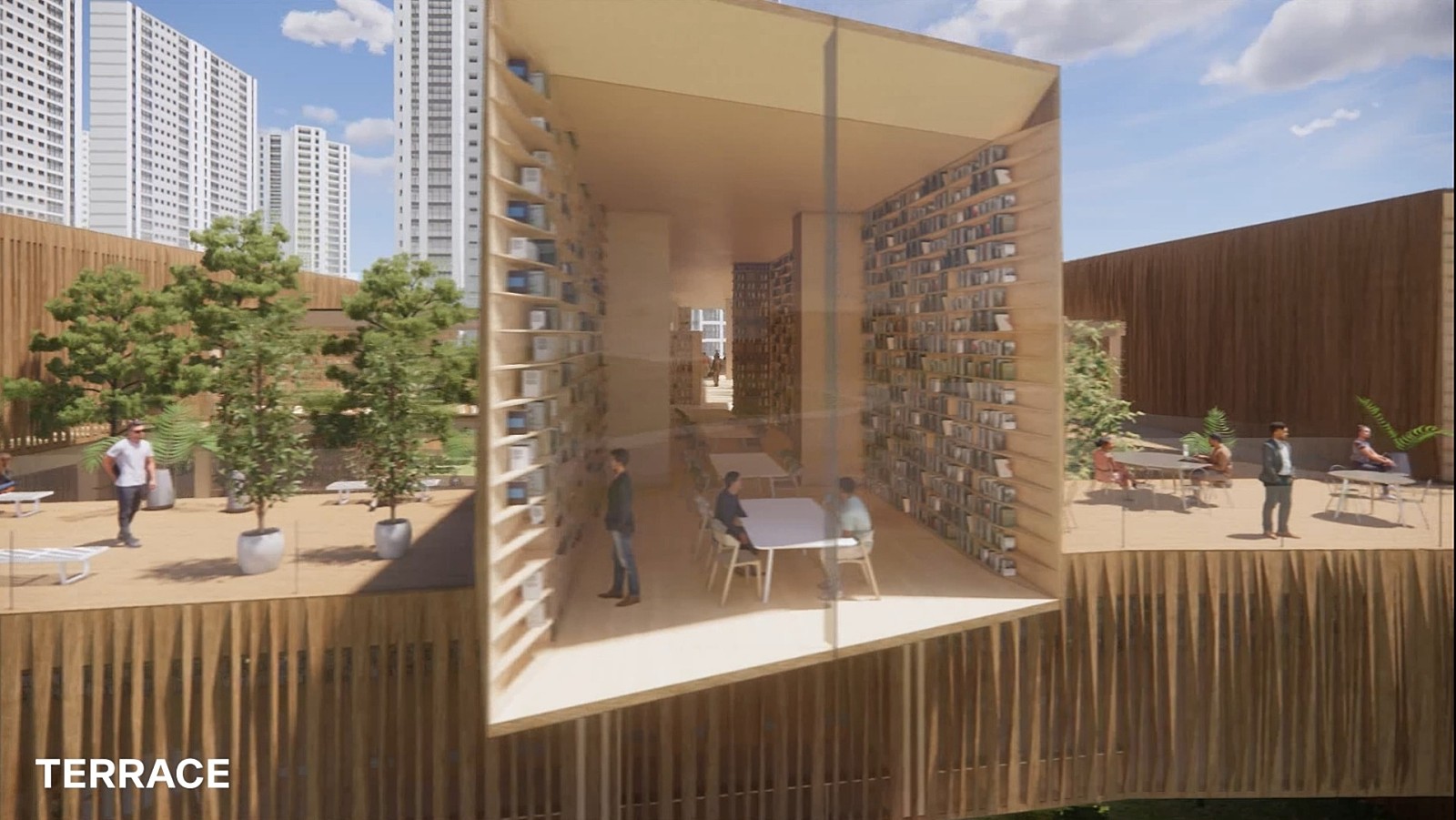 도서관은 친환경적 외관과 실용적인 디자인을 갖추고, 수평적으로 펼쳐진 독특한 공간 배치를 통해 이용자들에게 새로운 경험을 제공