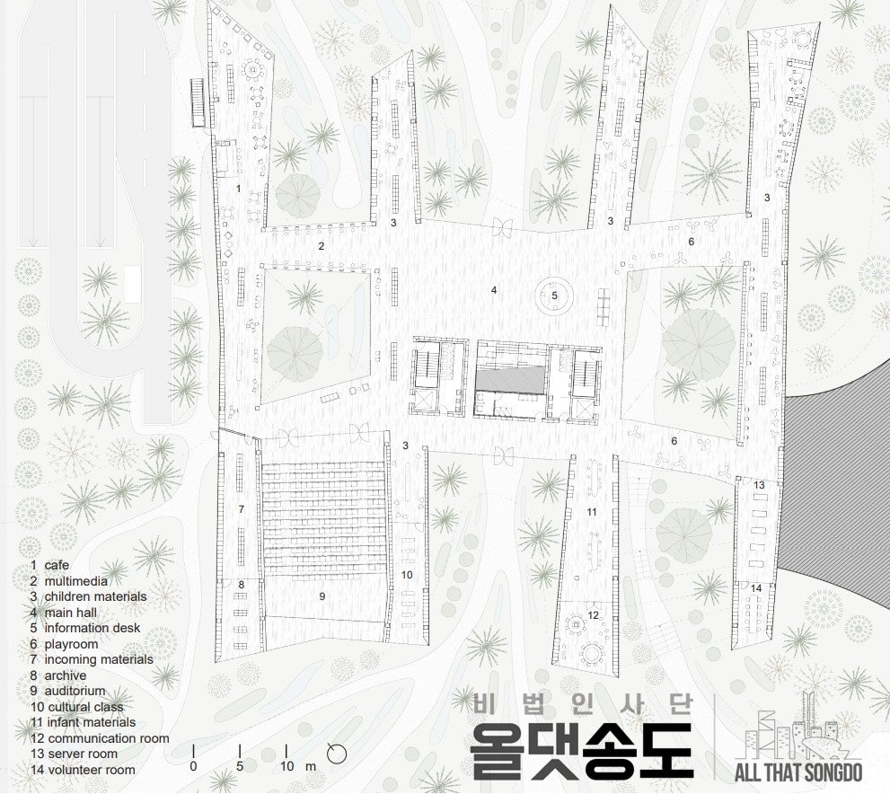 자료실, 강당, 북카페, 학습실, 강의실, 동아리실, 전시실 등