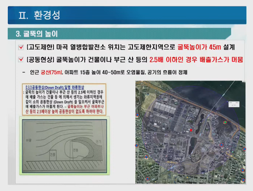굴뚝 높이가 낮으면 유해물질이 근처에 머무르며