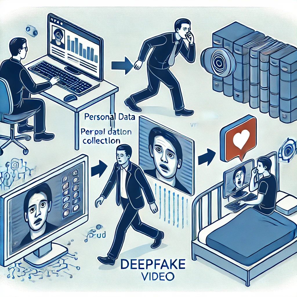 5. 목표 타격 또는 사기: 배포된 딥페이크 영상은 특정 인물에 대한 명예 훼손, 협박, 금전적 사기 등 범죄 행위에 사용됩니다.