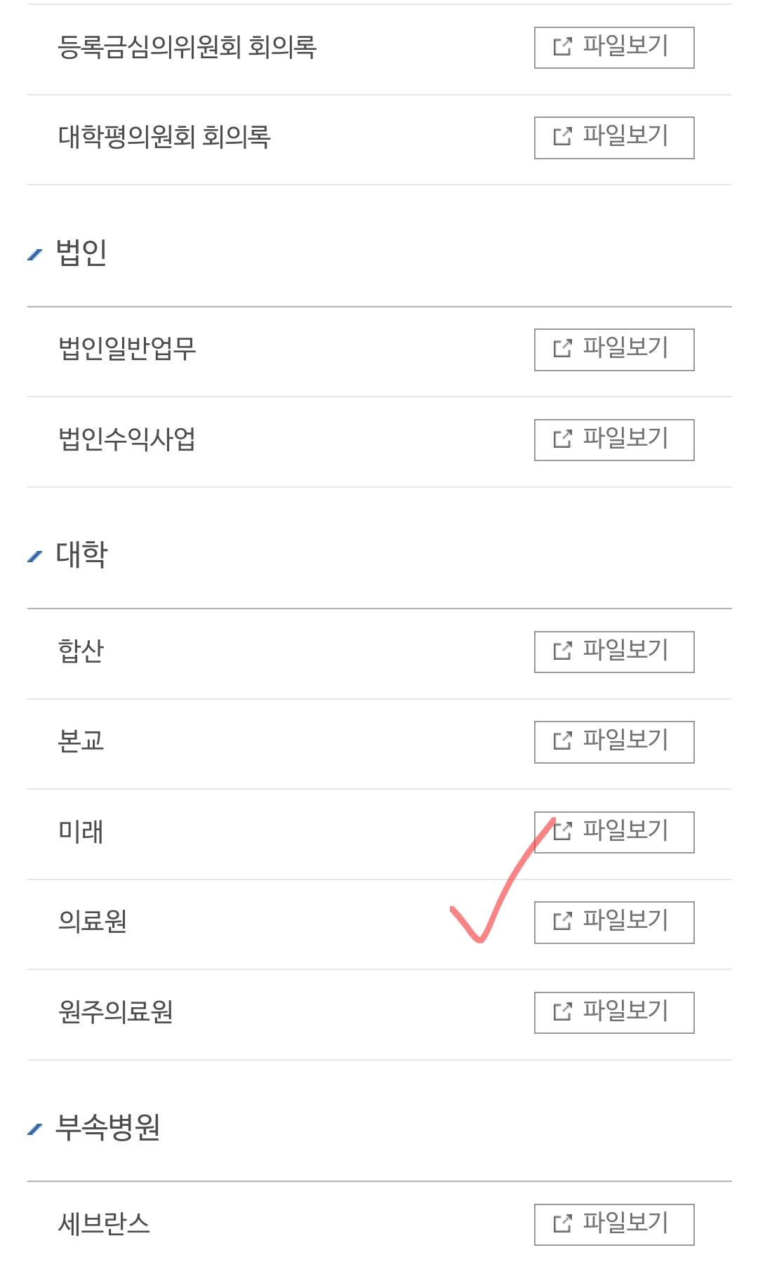 연세대 의료원 예산은 위에 링크 들어가서 아래항목 클릭한다.
