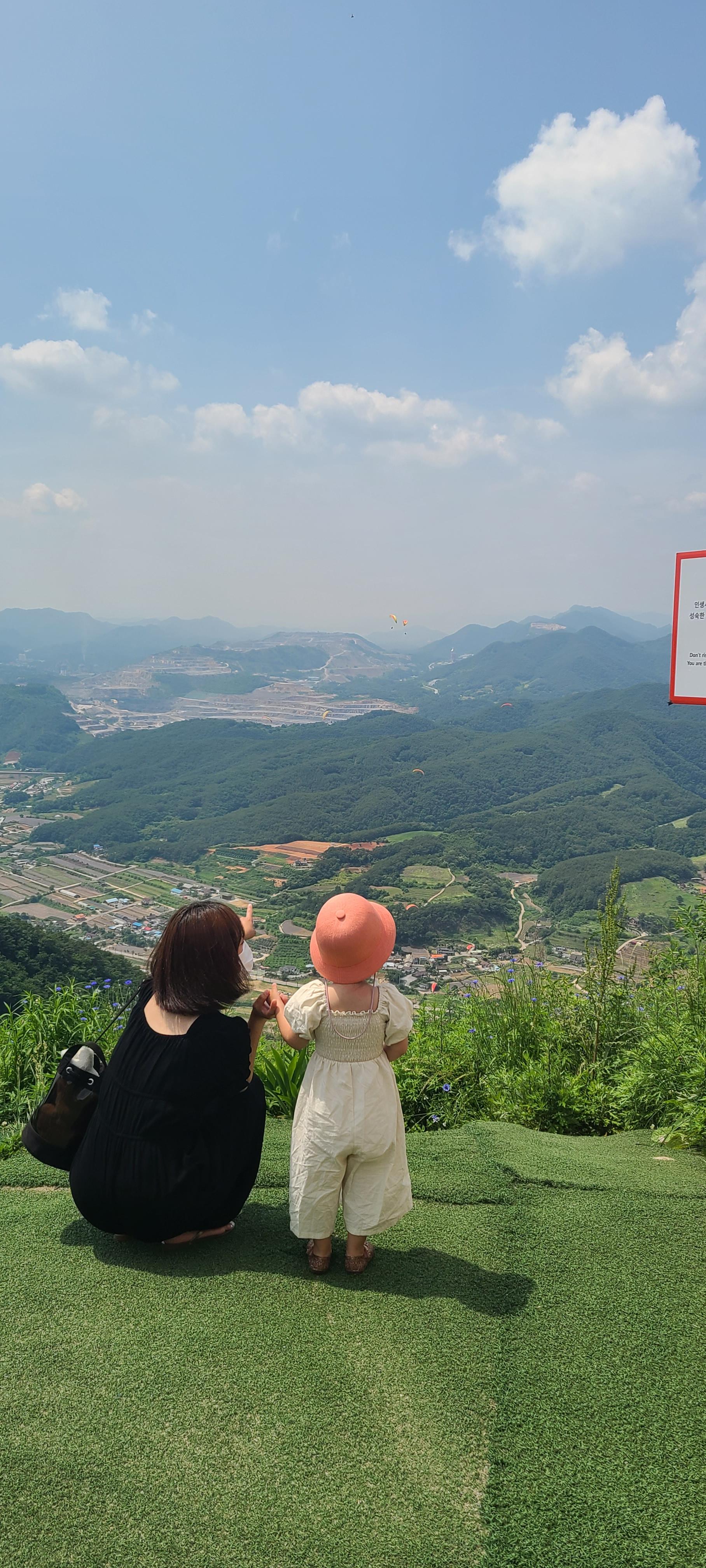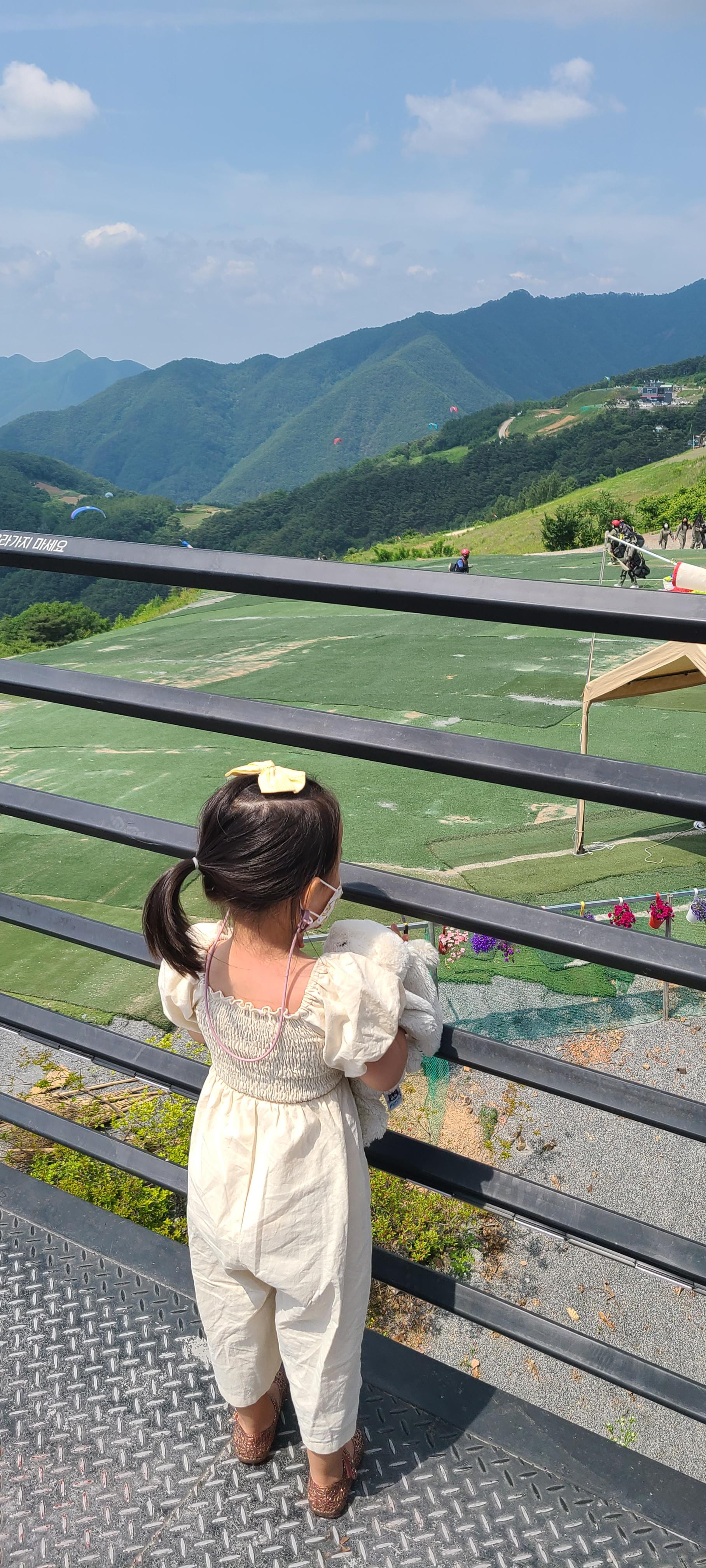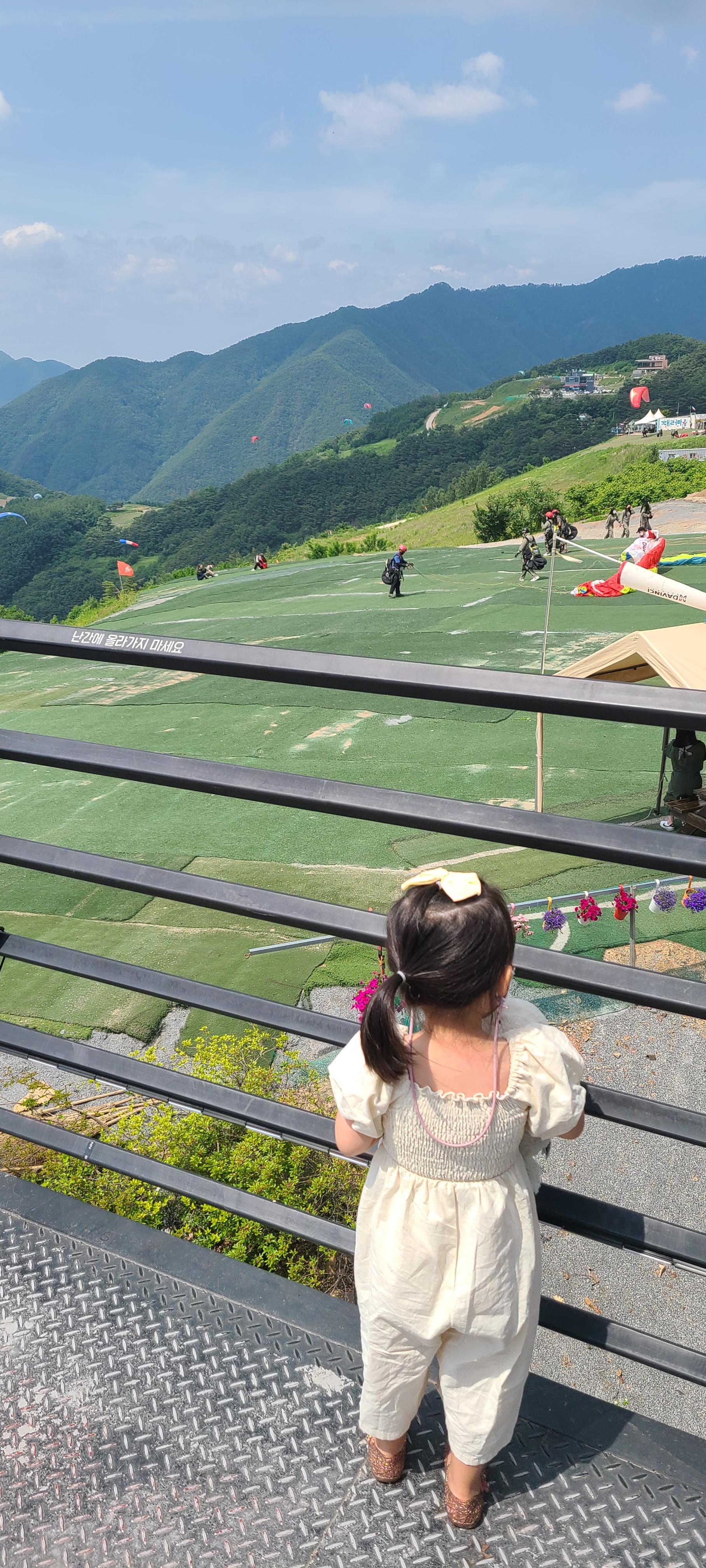 형형색색 패러글라이딩 하는 장면에 감탄한다.