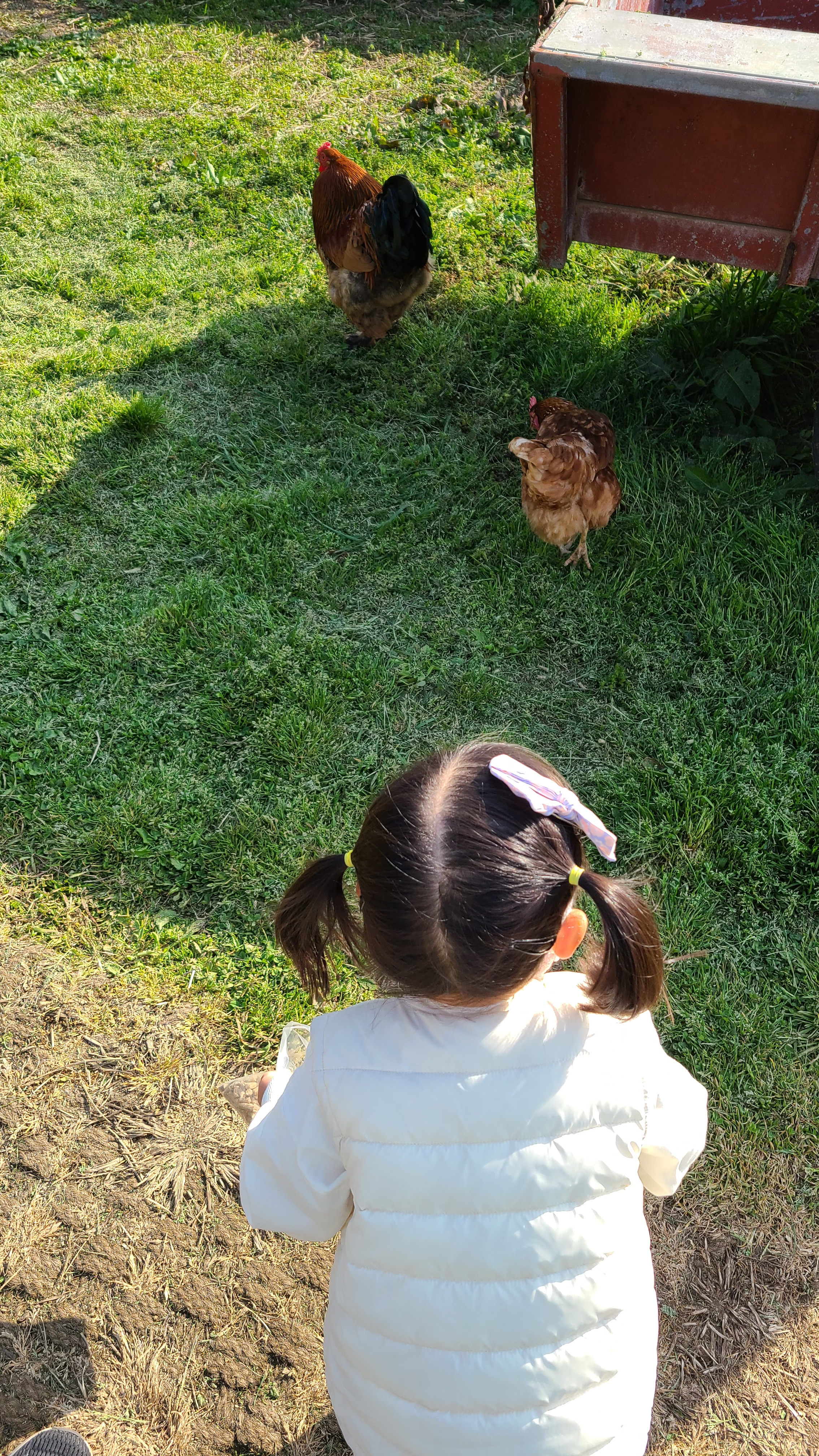 의외로 닭도 잘 쫓아 다니며 먹이를 주는? 던지는 아이