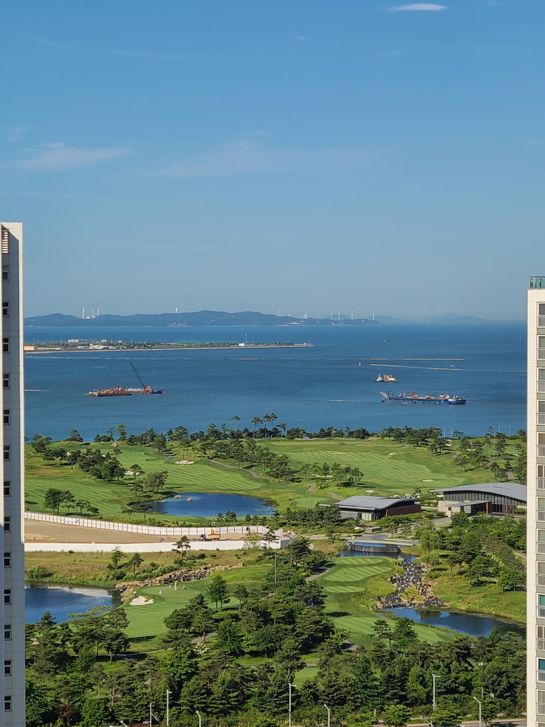 풍림 6단지 거실뷰 2공구는 송도에서 가장 먼저 분양된 곳중에 하나. 송도 학원가는 2공구에서 시작되었다. 해양경찰청도 있고 송도 초기에 이곳에 최대상권이 자리잡았다. 행정구역 상으로 송