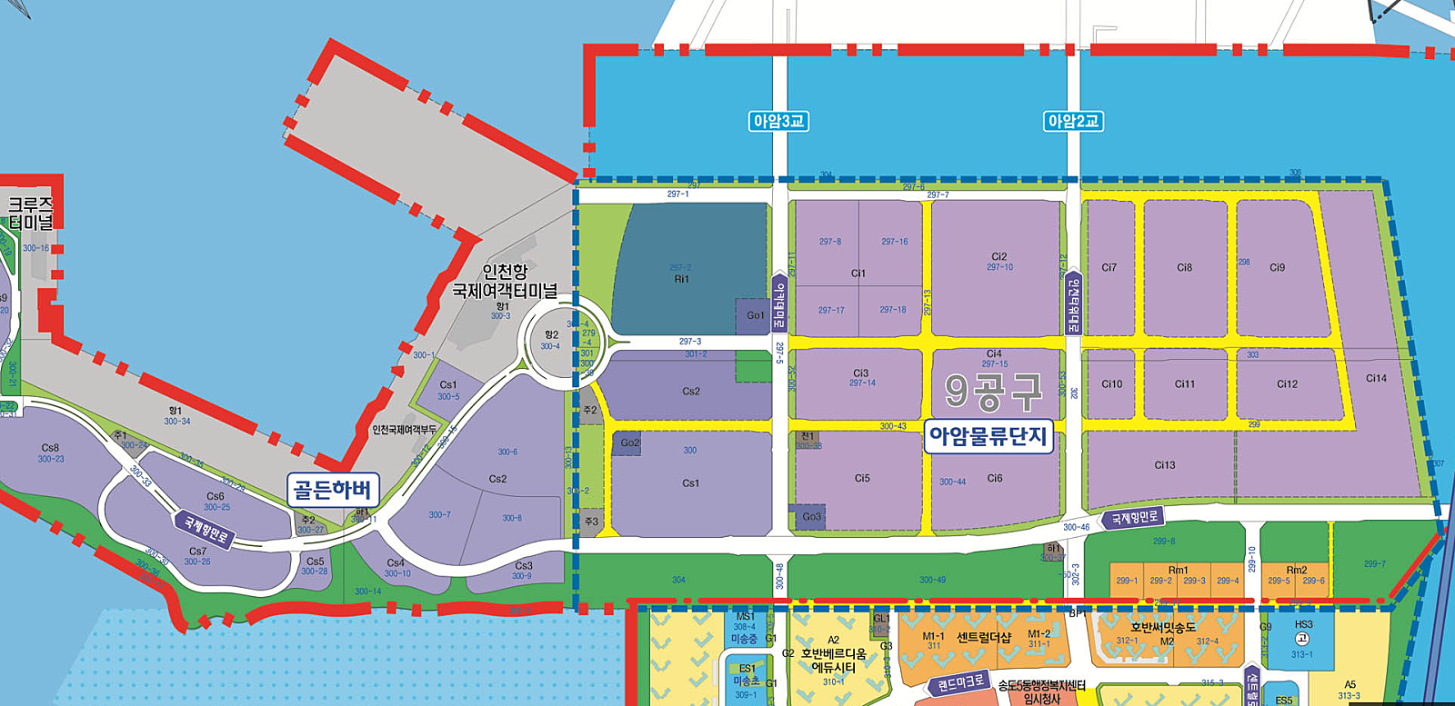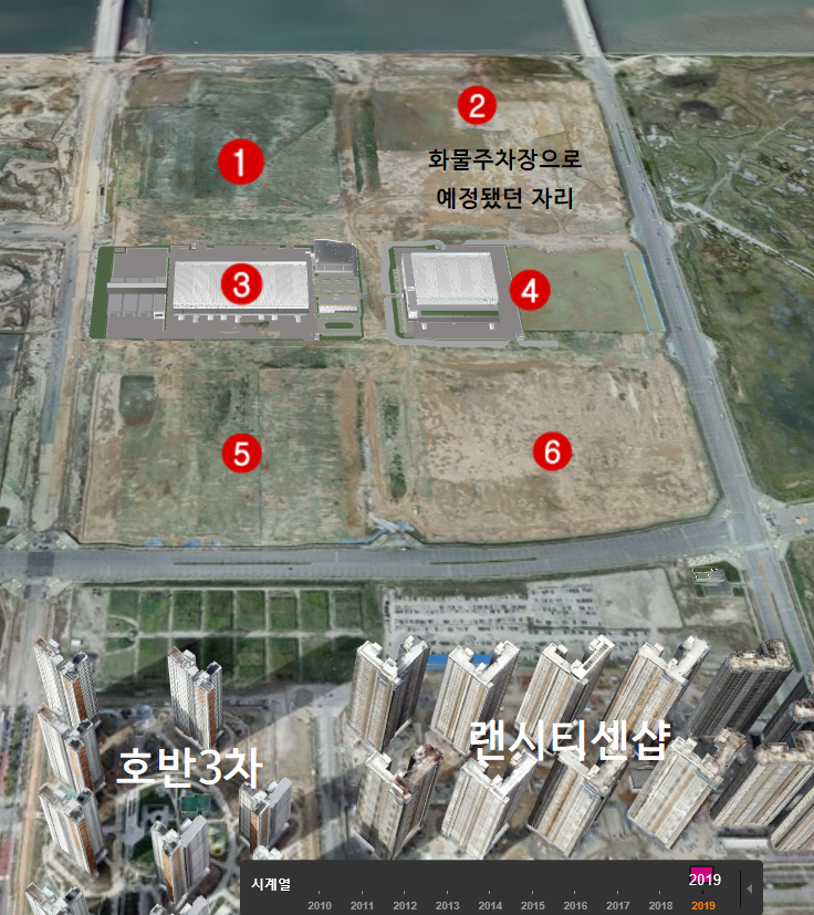 나머지 부지는 이런저런 이름으로 개발용도를 지정 했으나 전반적으로 물류창고일 것이다.(높이 40m 이내)