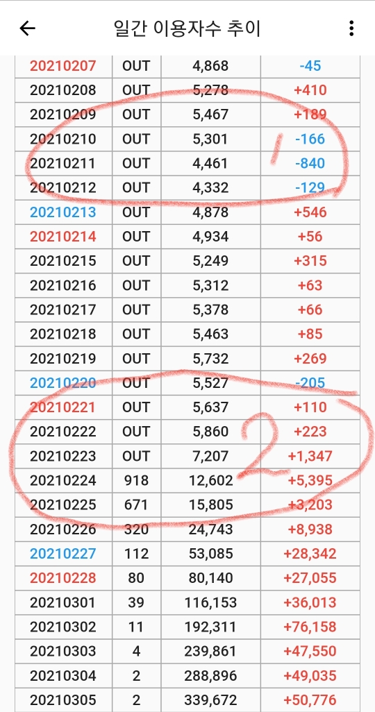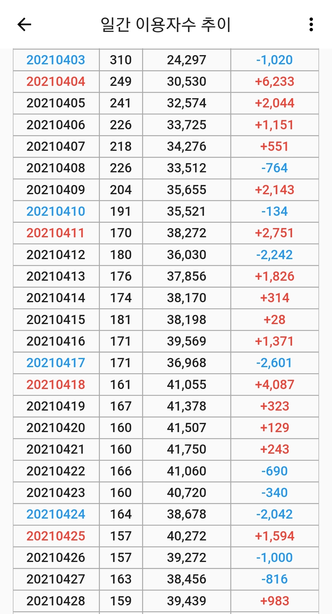 날짜-순위-이용자 수-변화량 이다.