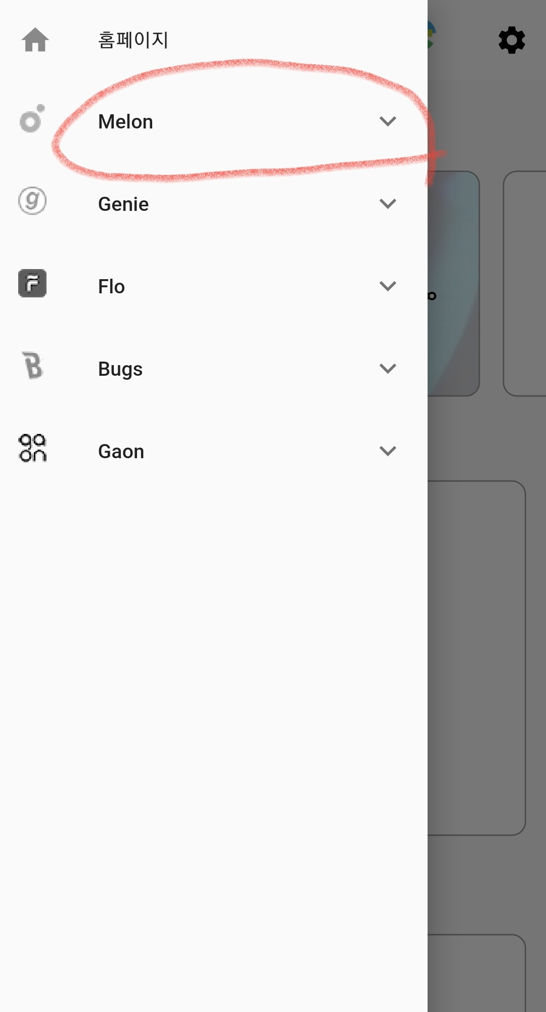 음원사이트 리스트가 나온다. 'melon클릭'
