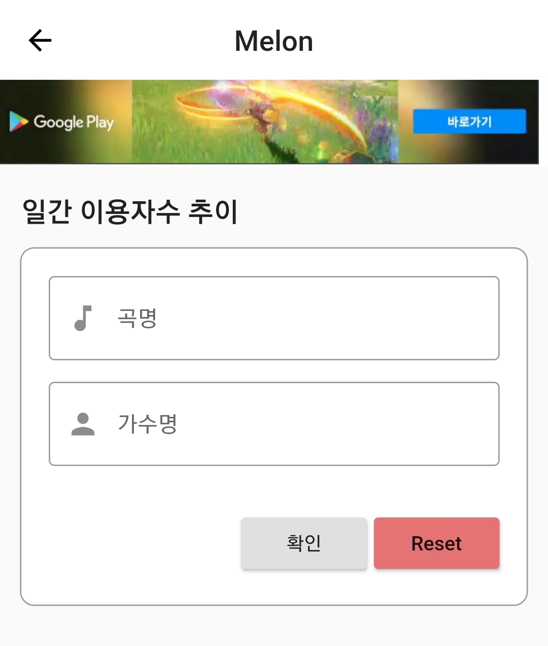 노래제목 입력하면 가수리스트가 나온다.