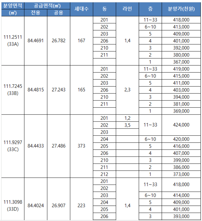 - 212동처럼 모든 동이 3세대 E/V 2라인이면 좋았을텐데 33평은 2세대 E/V 1라인이 많아서 아쉽긴 하나 1라인 아파트가 대부분이라 단점이라기 보다는 보통 이라고 생각.