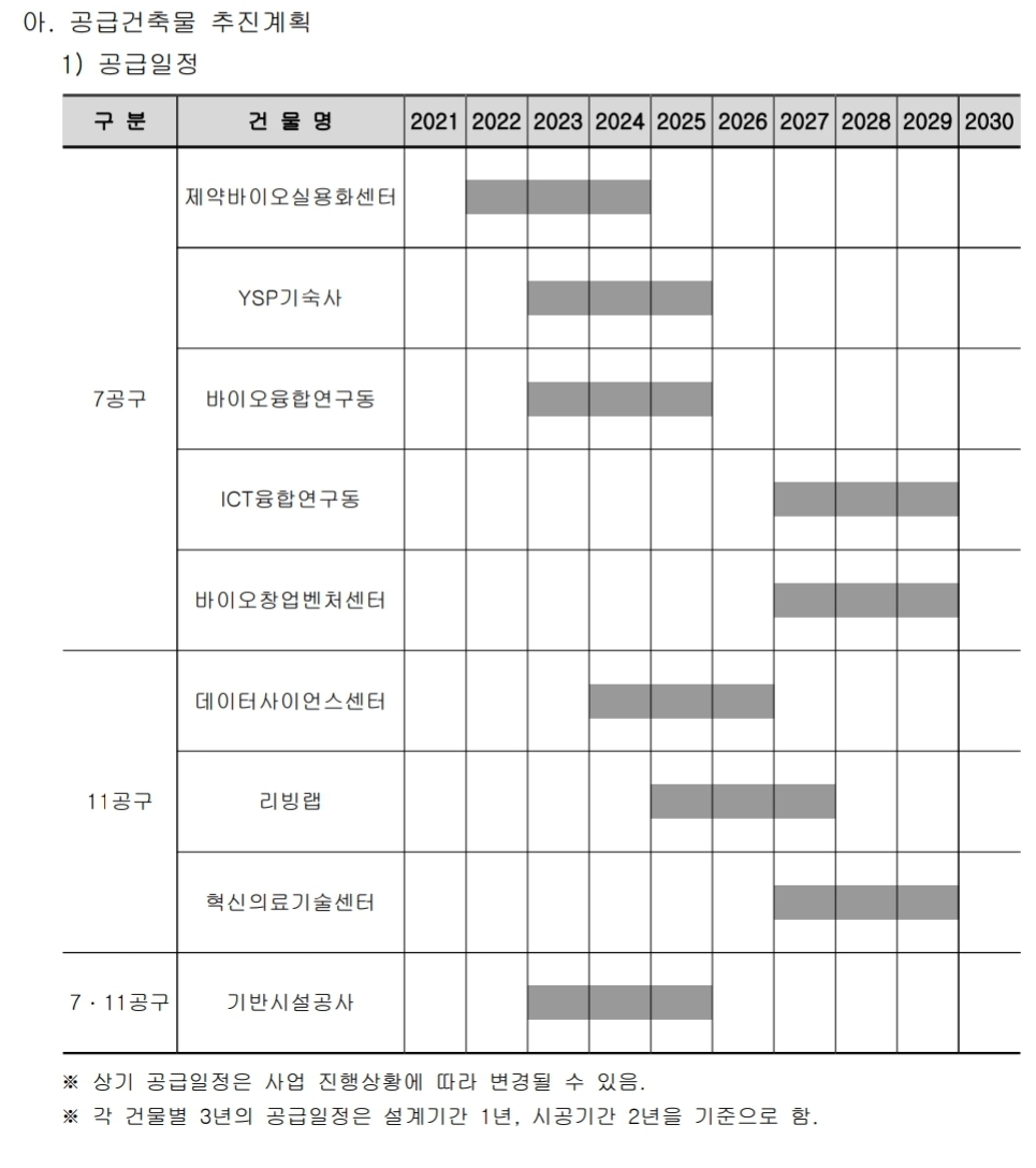 송도 연세대학교 부지에 들어올 제약바이오실용화센터. NIBRT 나 랩허브 등에 비해 주목을 못받고 있지만 진행속도가 빠른편이다. 최근에 나온 입찰공고문 출처 : 송도국제화복합단지개발 http://w