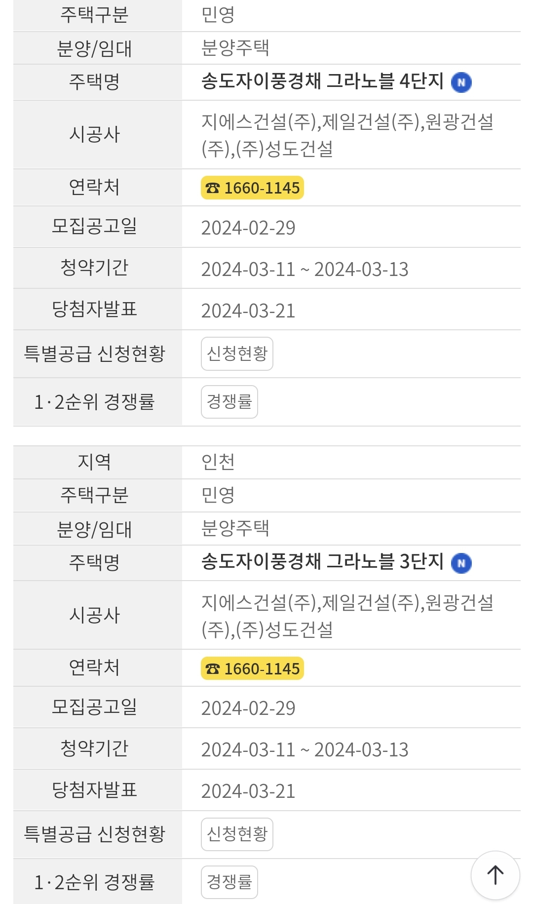 1,2단지(아파트)는 3월20일 발표